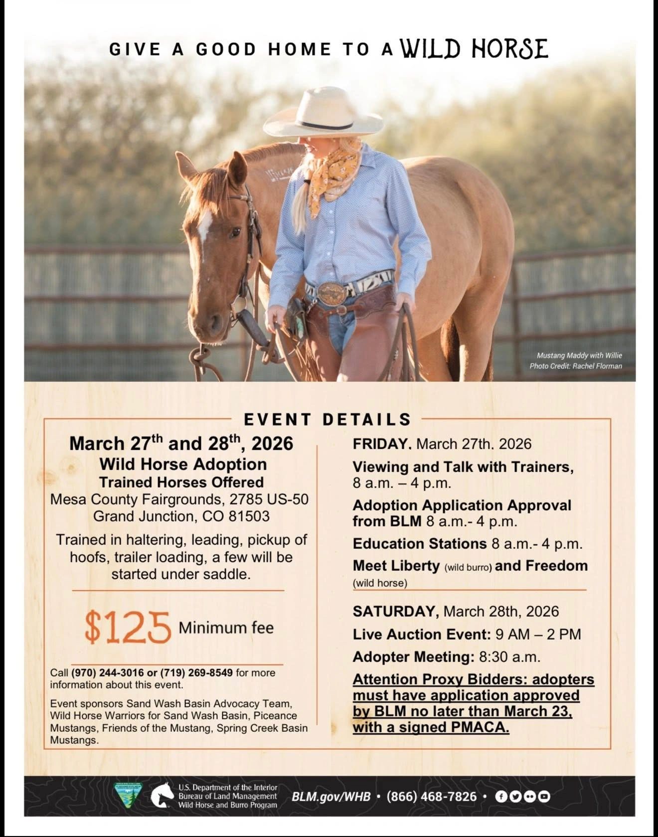 Flyer includes specifics. For additional information, or questions about Luna specifically, contact Steadfast Steeds 970.241.0939 (landline)